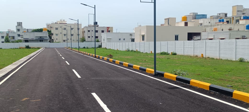 The project is strategically located near major transport routes, just 800 meters from Maduravoyal Bypass, 3 km from GST Road, and close to Tambaram Railway Station, ensuring easy daily travel. Plot sizes are available from 900 sq.ft to 5000 sq.ft, suitable for villas and independent homes.