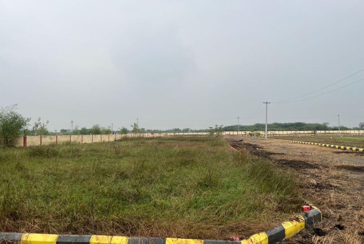 Plots are available in sizes ranging from 638 sq.ft to 2835 sq.ft, starting at an attractive price of ₹1390 per sq.ft. The layout features 23–30 feet blacktop internal roads, avenue trees, street lights, EB and water facilities, children’s play area, and 24/7 security, ensuring a safe and comfortable residential environment.
